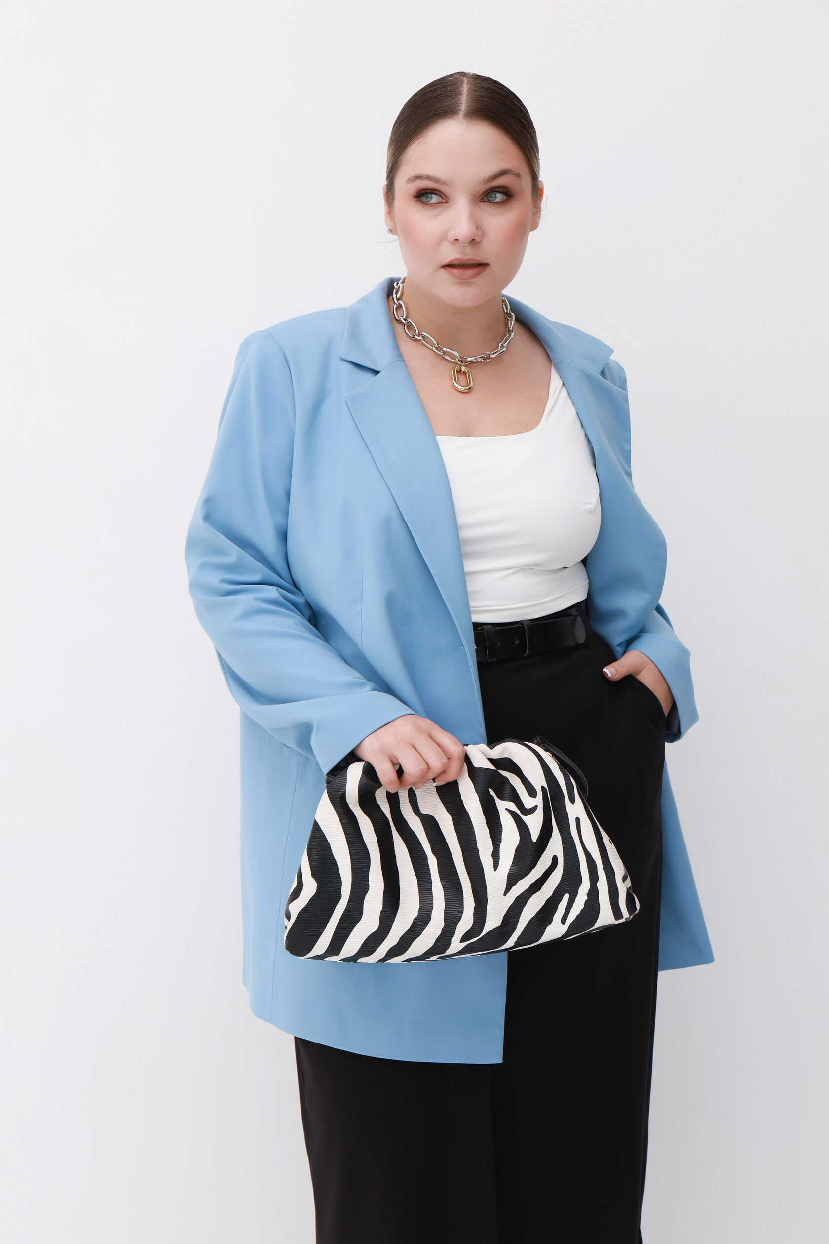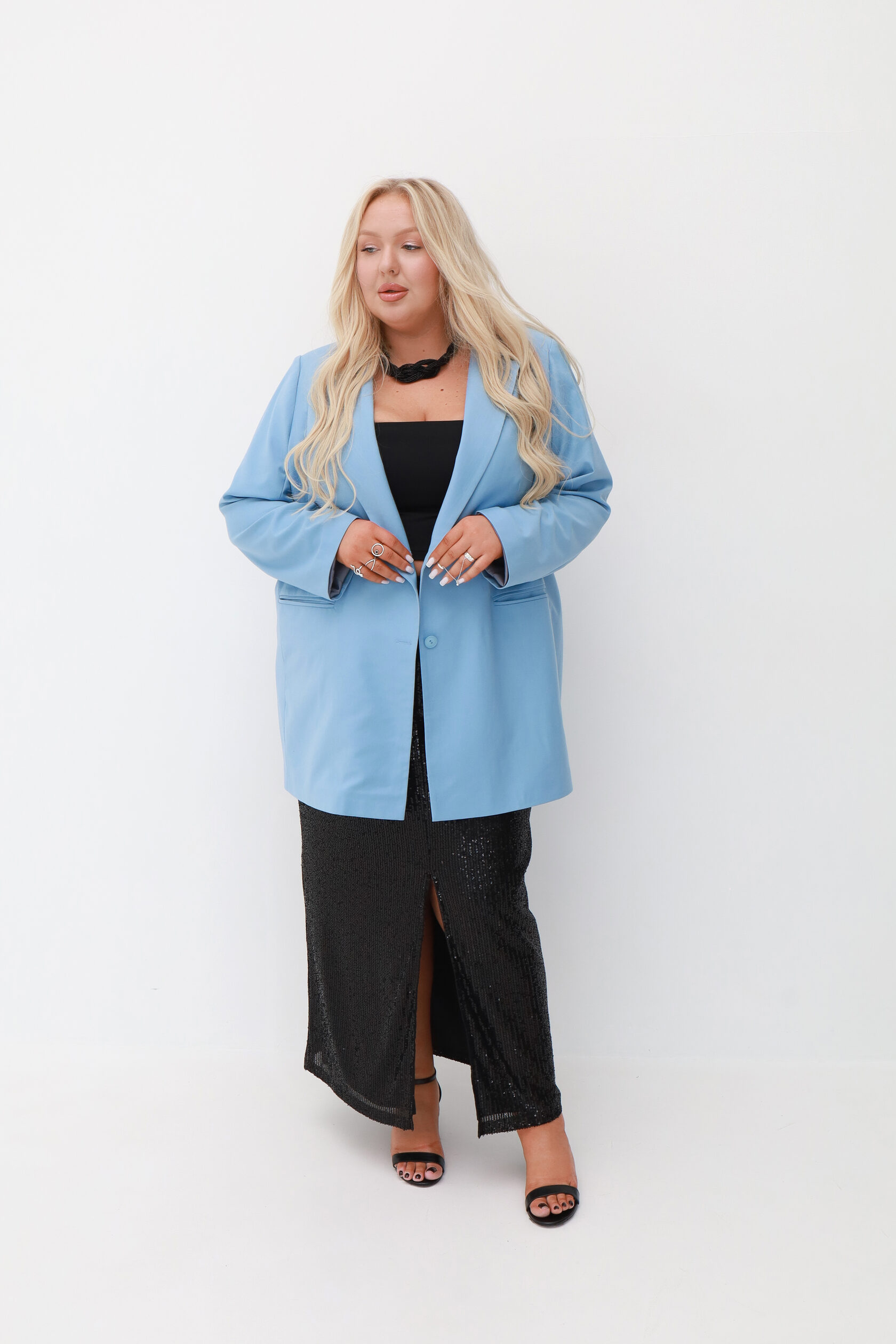 Мы видим одежду, как конструктор: каждый элемент коллекции легко комбинируется между собой, помогая создавать продуманный и универсальный гардероб. Платья, жакеты, юбки и брюки BLUEMOON работают в тандеме и не ограничивают ваши эксперименты — миксуйте фактуры и цвета, стройте собственные стили и смыслы.
