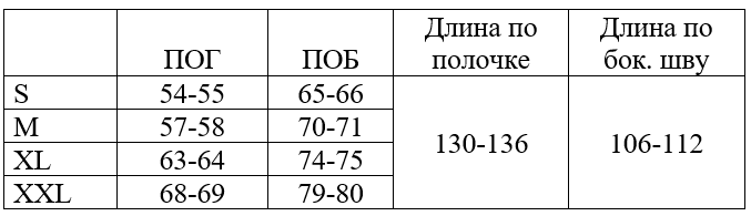 Таблица размеров