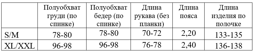 *обратите внимание, что в таблице указаны полуобхваты, значения указаны в сантиметрах, длина изделия по полочке (от основания шеи, через грудь), длина рукава - от основания шеи, через плечо.