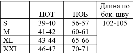 *обратите внимание, что в таблице указаны полуобхваты, значения указаны в сантиметрах, длина изделия по боковому шву от талии (самой узкой части). Полуобхват талии указан без учета растяжения резинки.