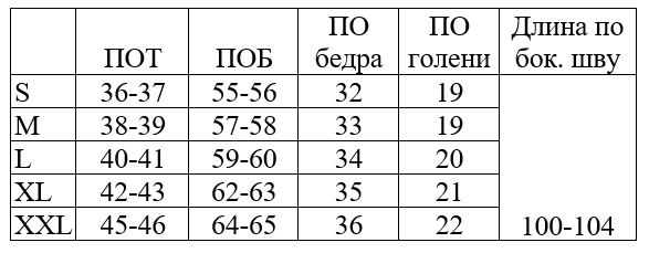 *обратите внимание, что в таблице указаны полуобхваты, значения указаны в сантиметрах без учета растяжения ткани. Длина изделия по боковому шву от талии (самой узкой части). Полуобхват по талии указан без учета растяжении резинки.
